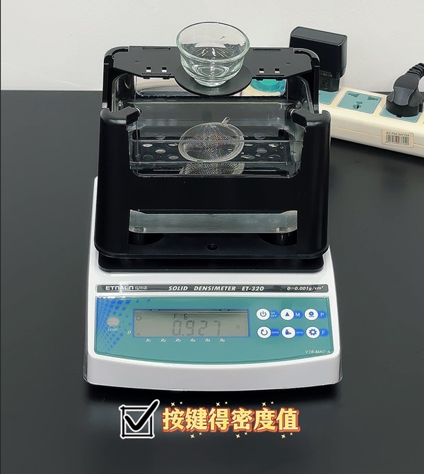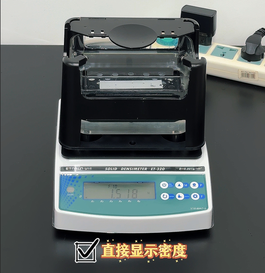儀特諾ET-320系列電子密度計(jì),基于阿基米德排水法的原理,結(jié)合高精度傳感器和智能算法,2步快速測量各類固體產(chǎn)品和材料的密度。